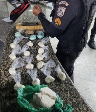 (Foto: Divulgação/8ºBPM) Uma mulher foi presa na manhã deste sábado (12) por tráfico de drogas, durante uma operação policial realizada na BR-101, ao desembarcar na
