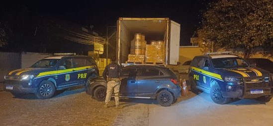 Carga apreendida pela PRF na BR-101 / Divulgação PRF A Polícia Rodoviária Federal (PRF) impediu a continuidade de um roubo de carga e resgatou dois