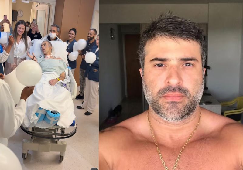 Uma festa merecida. O copiloto Felipe Marques Monteiro, atingido por tiro de fuzil na cabeça durante operação da Polícia Civil do Rio, teve alta da