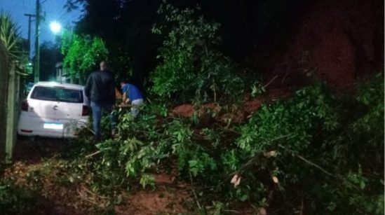 Foto: Defesa Civil de Pádua Em decorrência do temporal que atinge a região Noroeste do estado, um deslizamento de terra foi registrado na madrugada desta