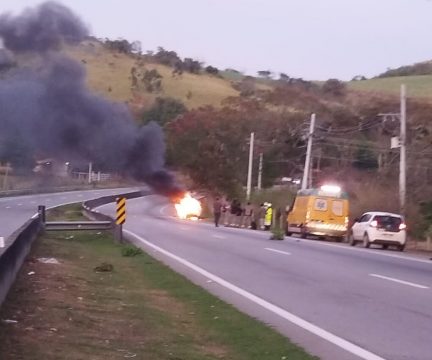 Um carro pegou fogo na manhã desta segunda-feira (28) no km 85 da BR 101, na altura do distrito de Ibitioca, em Campos dos Goytacazes, no Norte Fluminense. O incêndio começou por volta das 5h57 e não houve registro de feridos.