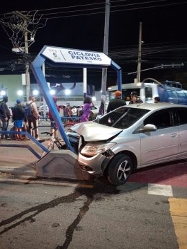O motorista de um Chevrolet Prisma perdeu o controle do veículo, na noite de quarta-feira (13), ao trafegar pela Avenida 28 de Março, em Campos dos Goytacazes, e invadiu a Ciclovia Patesko, que separa as duas pistas de uma das vias mais movimentadas da cidade.